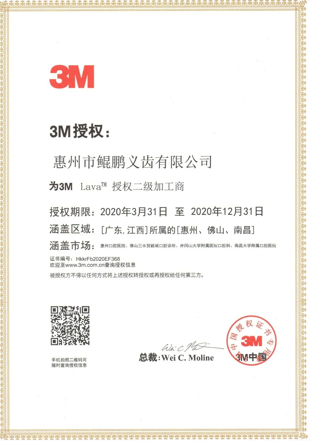 近日,我司獲得了3M Lava?授權(quán)以及隱適美修復(fù)實(shí)驗(yàn)室授權(quán)。